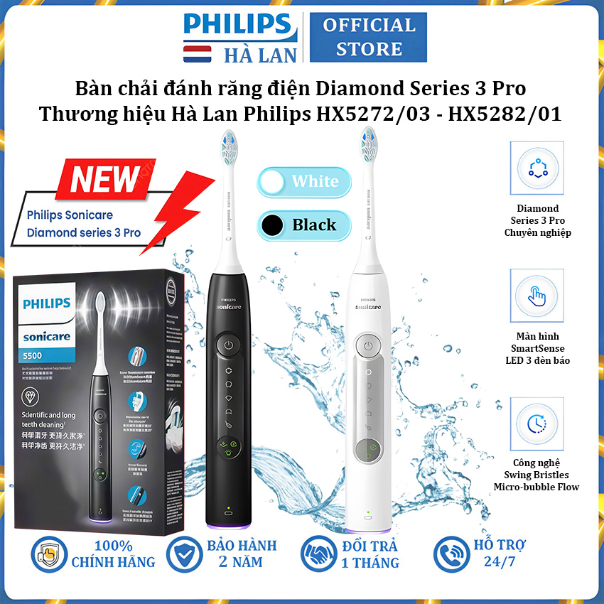 Bàn chải đánh răng điện Philips Diamond Series 3 Pro HX5272/03 và HX5282/01 là sự lựa chọn lý tưởng cho những ai muốn nâng cao hiệu quả chăm sóc răng miệng với công nghệ tiên tiến và thiết kế tiện dụng